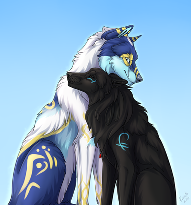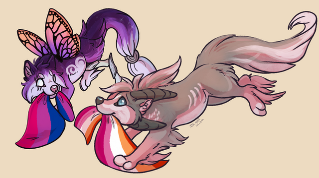 Mine and a friend's characters!Want art like this? Commissions are open!