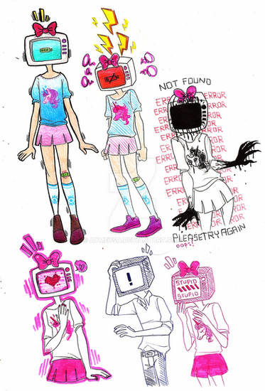 #anime #blood #error #head #keyboard #letters #manga #mouse #pastel #pink #television #tv #vibrant #computerhead #computer