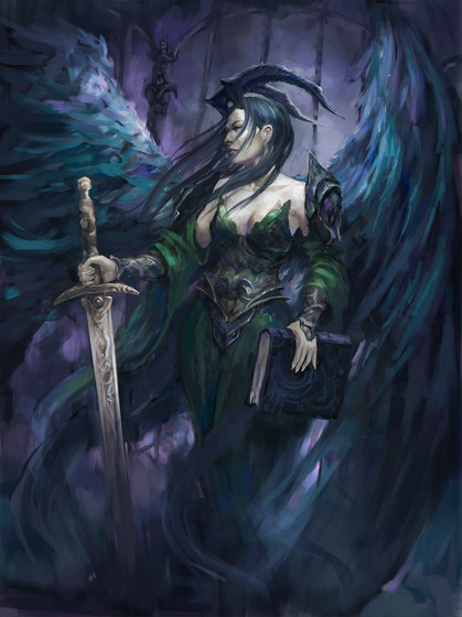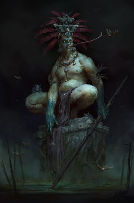 The color and concept is absolutely amazing. It's very captivating and laid out very nicely. The colors help convey the dark feeling of the painting. Very well done.