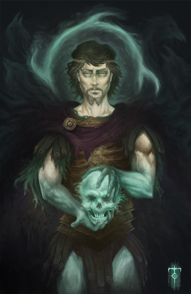 amazing portrayal of the ferryman!! Love it, especially the skulls on the boat and the violet cloak! Also, your style looks really cool!