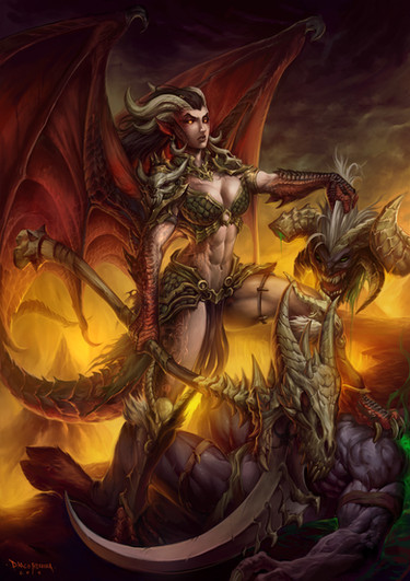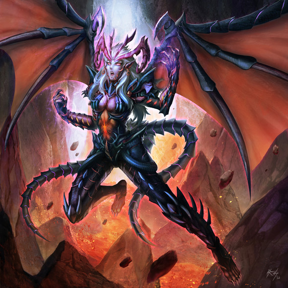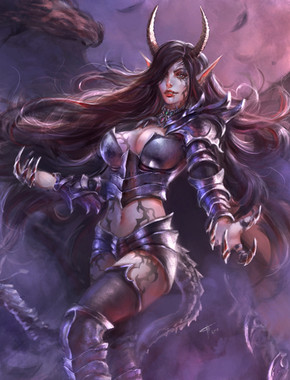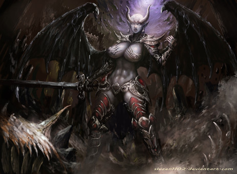 #demoness #armor #female #hell #hellfire #horns #illustration #succubus #weapon #fire