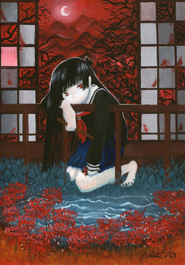 #animeart #blood #csp #digitalart #digitalpainting #fanart #forest #illustration #miko #rika #river #water #higurashinonakukoroni #mangadrawing #furuderika #higurashiwhentheycry #clipstudiopaint #art #lmathilde_art #higurashifestival
