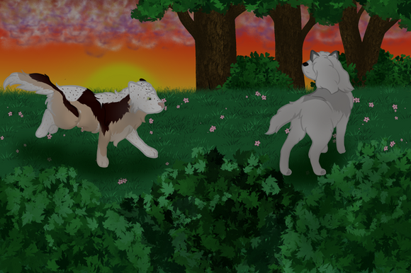 #beach #digitalart #sea #commission #palmtrees #sunset #wolves