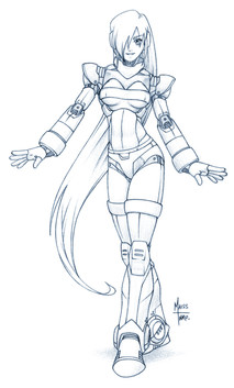 Oh, and just now, I was trying to figure out who did she reminded me of draw in your style. And she looks like Samus Aran!! ^_^