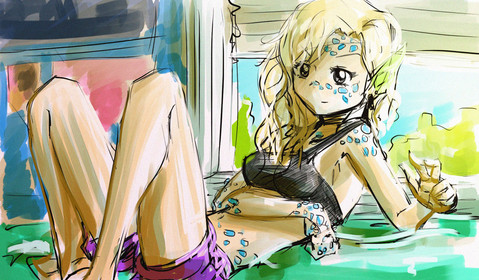 hey coulda been worse dude! at least she has a shirt 8D my favorite thing is the water. .....and her hair