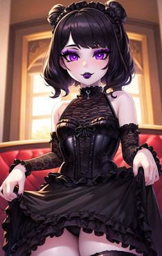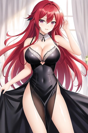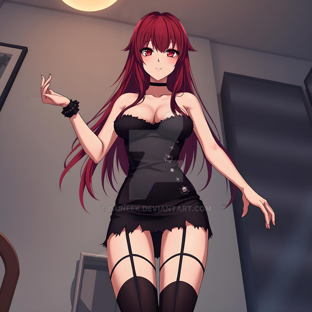 Generated with AI.Red color themed girl.