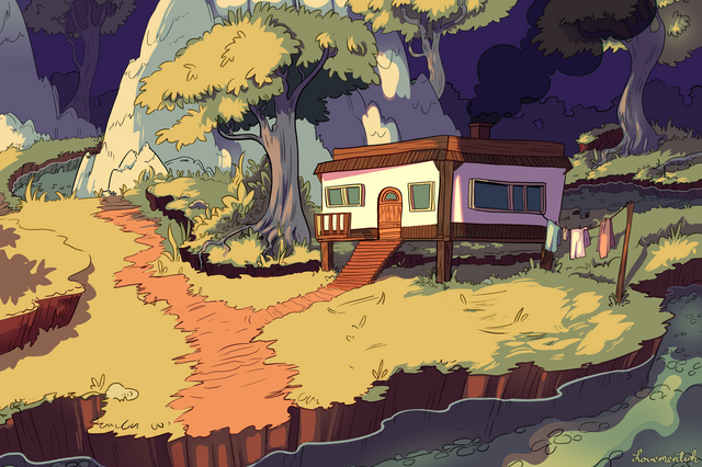 #magic #digitalpainting #digitalart #cartoon #fantasyart #conceptart #digitalillustration #forest #glowing #illustration #mountainscape #nature #night #nighttime #quiet #tree #foggylandscape