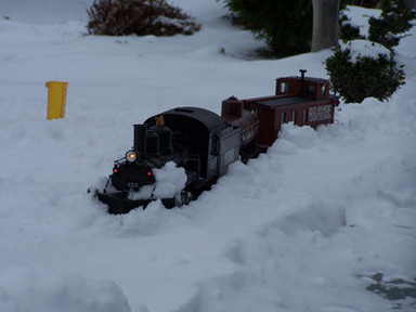 The result of a test of making fake smoke and steam, plus I love seeing trains in the snow even though I HATE winter. This is my beautiful 1:20.3 scale mogul for my garden railway (which now needs major renovations).Related content