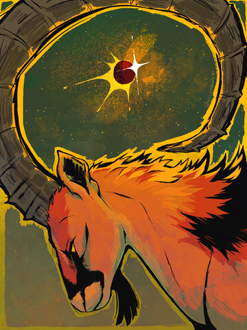"Their brands were still on fire and their hooves were made of steelTheir horns were black and shiny and their hot breath he could feel"