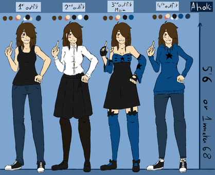 Persona ref. Hair styles and outfits can be mixed.Bio: Kay's pretty outgoing and likes having fun. She may not smile big, but she smiles often. And she likes dancing (even though she kinda sucks at Just Dance). She's also pretty flexible, since she took acrobatics classes from kindergarten through seventh grade, so there's a lot of poses she can do, but she's not athletic. Just flexible. No shoes, 'cause she'd rather run around barefoot/in socks. Never really wears make-up/paints nails because there's she thinks they're wastes of time. The book in her hood is This is Not a Book by Kerri Smith. And she doesn't really wear much for accessories. Maybe a black ponytail elastic around her wrist.