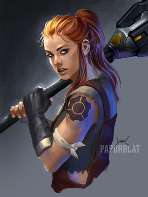 Another brilliant drawing fromΒ You my good sir! Another time You've managed to draw a face, that express a character for who she is. Lips and cheeks says about her kinda giggly character, but the look in her eye seems very focused. That emphasizes her technical personality and talent. I interpret the gray background as a colour of metal so it fits the character perfectly. Well done my freind, clap, clap, clap!!!