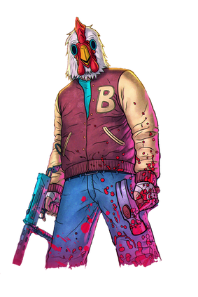 This is a genderbent Jacket from Hotline Miami for an assignment for week 14 of practice!This was my first time actually putting a full character together!