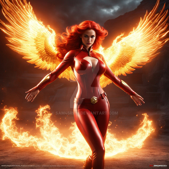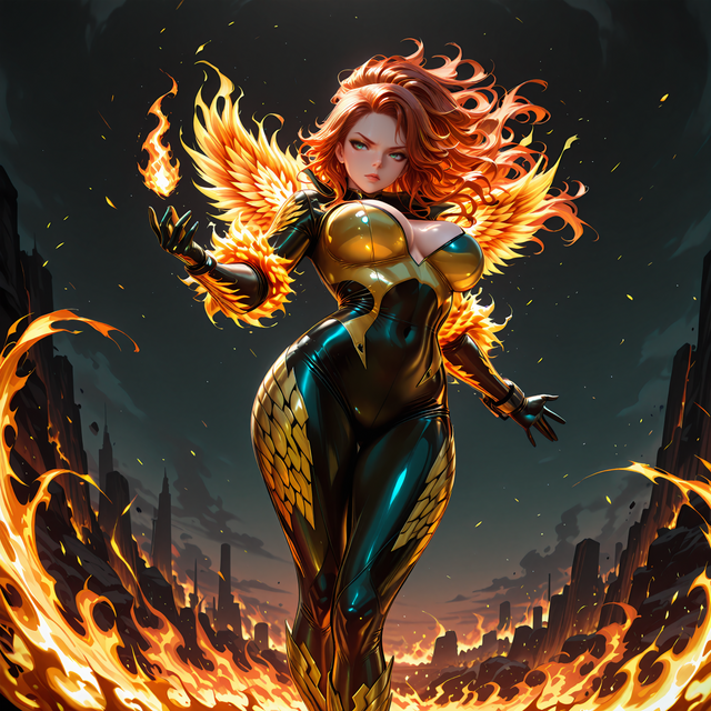#ai #fantasycharacter #phoenix #phoenixjeangrey #pinupgirl #wingedcharacter #phoenixbird #stablediffusion #bigboobs #bigbreasts #bigtits