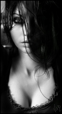 I like the idea of hiding part of her face so her eyes look even more sensual.