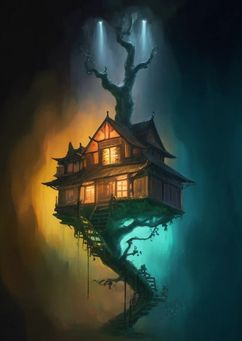 In this little imaginary society it is a status symbol to live on a high place. Everyone does his best to overcome the others, even if it means building houses on not-so-strong trees and cliffs.
