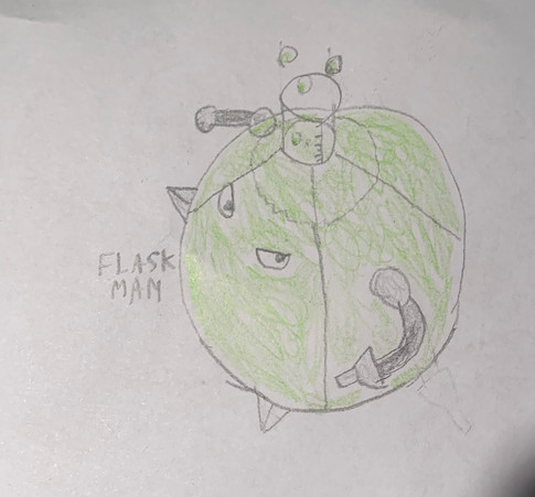 Mine man and Timer man were designed by doctor light himself to defuse bombs in dangerous areas, but one day, their blue print were stolen by Archimedes. When he founded the secret society, he quickly built them up for his robot army. Timer man is the complete opposite of Mine man’s reserved and introverted personality. In fact Timer man is positive and enthusiastic at the point of being hyperactive. The two don’t get along very well, but Timer deeply admires his bigger brother, although he don’t know if he feels the same way. Timer man stage will be an enormous facility filled to the brim with explosives, you have a limited time to complete each room or megaman will blow up. After this race against time, you arrive in a underground bunker were Timer man is waiting. When fighting the little guy, you’ll have to dodge the sticks of dinamite that he throws at you, while he hops around in a pattern similar to mine man. When his health is halved his timer will start counting down, this means you’ll have to defeat him, before the time runs out, or megaman will go down with him. In this fase of the fight he will sometimes stops in the center of the room will throwing dinamite all around him. After defeating him, you’ll get the weapon: timer boom. Timer boom lets you throw a bomb that grows in size the more you charge it( dealing more damage) that explode after 8 seconds. This weapon is also Mine man’s weakness.