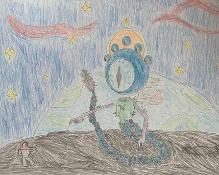 I just love the idea of this overpowered being acting like a toxic influencer only to then to lose his cool and start a Crimson 1 style meltdown whenever someone object to anything he says. As you probably guessed the main inspiration for his color palette was Galactus, but I was also influenced by the Pokémon Regighigas