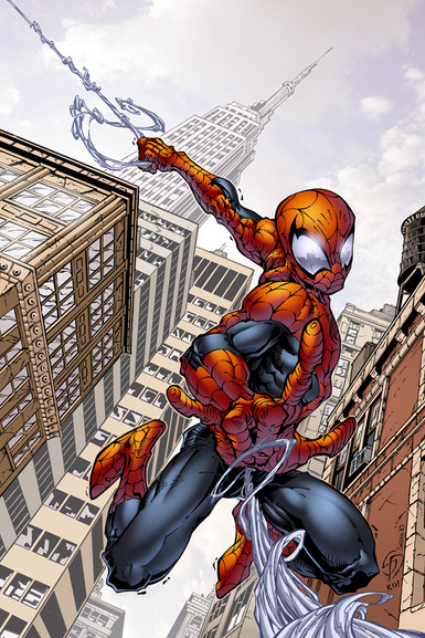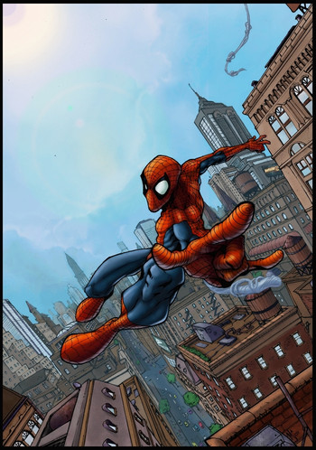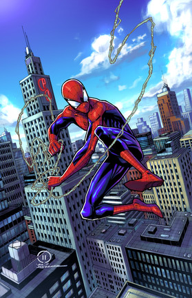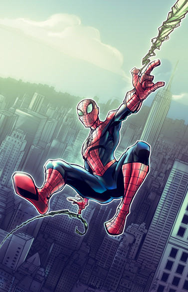 spidey could be more saturated and the clouds are too grey... colour hold the web stuff maybe?