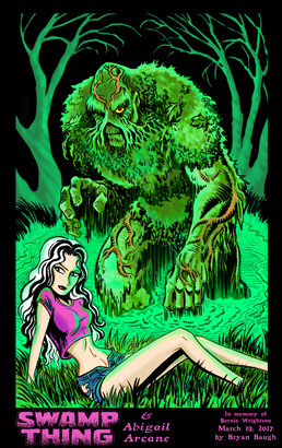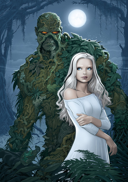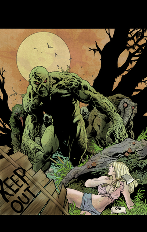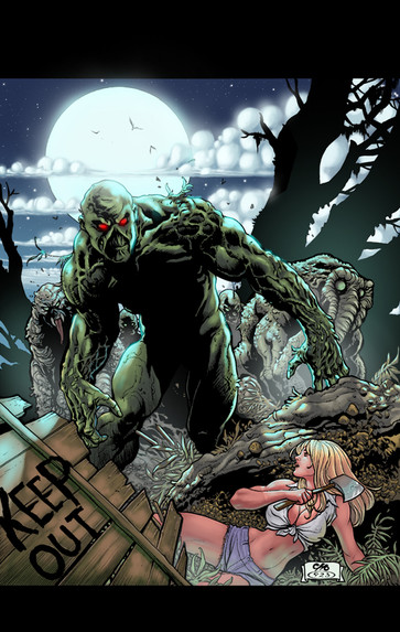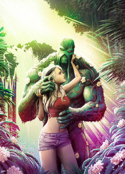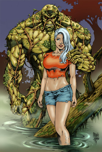 Awesome! Love me some Swamp Thing. I believe the whites of his eyes are orange, though. Who's the babe?