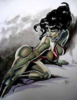 OMG no critique this is AMMMAAAAZZZIIINGGG!!! I looove Vampirella have the new released art book and a shit ton of the old comics. This wins! I like how you can tell that things like her nails are really hard and her teeth but when you look at her skin you can see the softness in her bosom and the texture of her hair as well this is amazing... I love how good you are at drawing leather as well. You have inspired me to do some fan arts of Vampirella LOL!