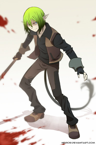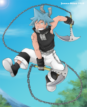Anyways...awesome pic, your style rocks, and wowwowow...awesome perspective! It's amazing Janners! Love the pose, so dynamic, and awesome weapon choice, love scythes! Nice expression, and I love how the chain goes through the collar! I love this to pieces!