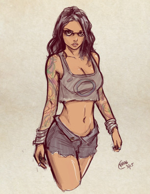 I'm with everyone below. The sketchiness just gives the whole drawing a different feel, and it looks great. I also really like the clothing ideas. Pretty sweet stuff