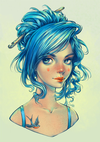 I love the way you did her face. Interesting angle / perspective. Lovely work!