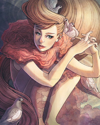a remake of an old piece i drew 11 years ago . it was the first drawing i did that made it to the deviantart front page, so it has a lot of sentimental value to me :] inspired heavily by alfonse mucha’s fantastic art nouveau posters. process here .drawn in photoshop cs5 with an intuos4. time taken - about 5 hrs. for more info on my artwork please visit loish.deviantart.com/journal/6…