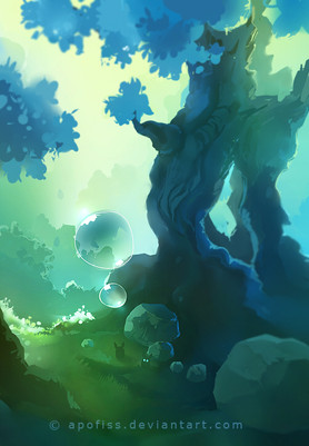 This is really pretty, I love peaceful scenes! Green is my favourite colour again (it keeps changing!) and so I am especially in love with this piece right now. Maybe I should be drawing some trees, too, it looks really fun!