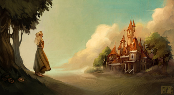 I love this! It reminds me very much of some of the wonderful old Disney background paintings like in Sleeping Beauty <3