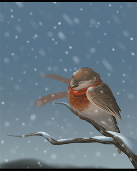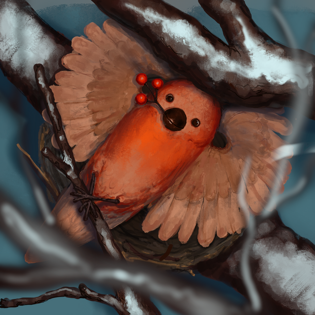 Aww, that is so cute. It would make an adorable bookmark. I love how stylized it is...and how the robin is a big puffball! I also like the kind of sketchy feel it has.