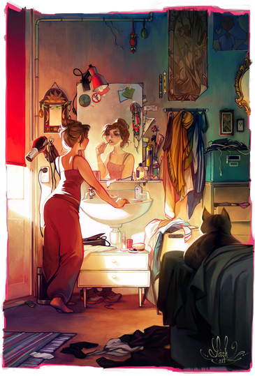 I love her look, and I love the roses! But yes, it's a relief you draw your people with different styles and sizes. Not everyone is a skinny lady with tan skin, blonde hair, and a sharp jaw/chin (nothing wrong with that of course, but I love variety). Love this!