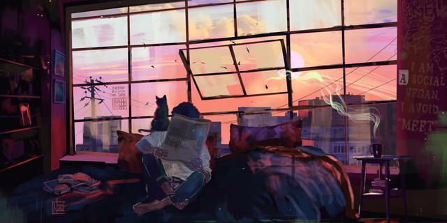 environment practice based on sunset from my living room window.drawn in photoshop cs5 with a cintiq 24HD. for more info on my artwork please visit loish.deviantart.com/journal/6…