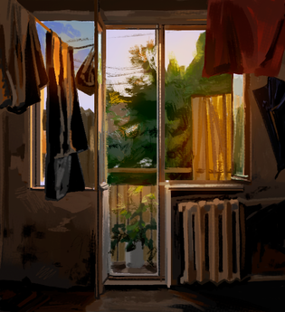 Oh wow wow, I love this so much. It's such a simple picture, but so atmospheric. It feels like the very encapsulation of a sunset, and the way you use colour here and the contrast between the cool tones inside the room and fading warmth outside is SO. GORGEOUS. Art aspirations!