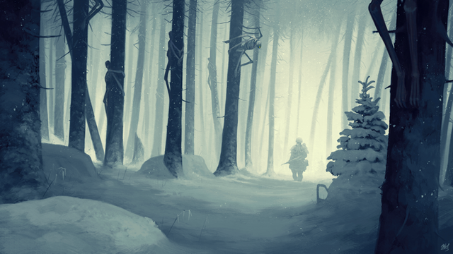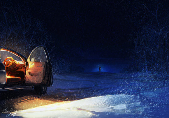 Beautiful piece. Loving the limited colors, the movement, and that feeling of "cold" in the piece. Great atmospheric piece with a very compelling aire of mystery. Well done. Love seeing this kind of piece from you. I usually see your character studies, and this just feels so much more complete. Nice job!