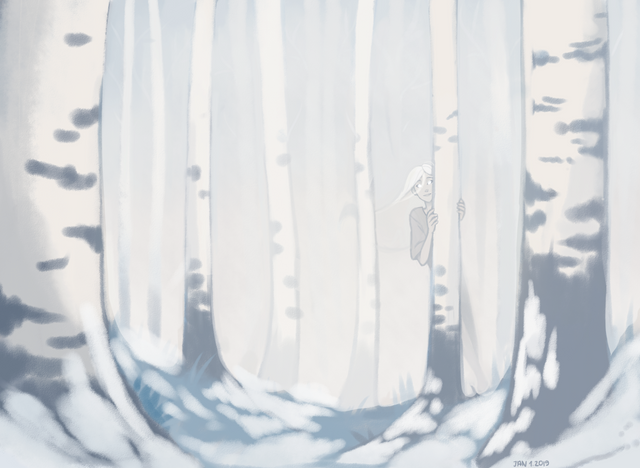 a cold, wintery picture for those who are sick of this long, hot summer.Drawn in Photoshop with a Cintiq 27QHD!