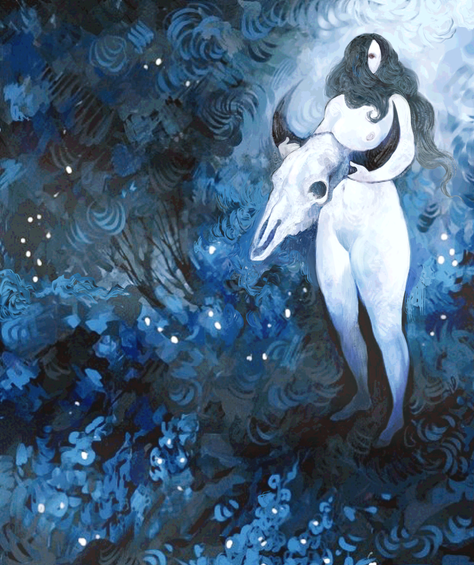 Somehow this one reminds me of early nature deities - something about the figure's posture and her eerie, supernatural quality, combined with the strong focus on nature. Anyways, very nicely done, I think you definitely captured something about the frosty cold of winter here. As always, keep up the good work!