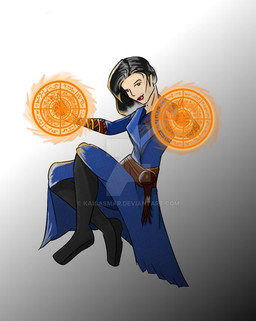 Did one of my Spidersona's heroic allies this time round. So here's Doctor Strange! Decided to go a bit international with my heroes a bit more than the villains. So she's half-Tibetan, half American and has mostly the same origin as the main universe Dr. Strange. I tried to design her outfit based around some traditional garb mixed with the colour and cloak of the original.