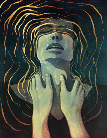 I love how thick and golden her hair looks, and how delicate her knuckles are. The whole piece has such a golden glow to it - I can't help but be reminded of medieval devotional work, which is sort of appropriate in a really perverse way.
