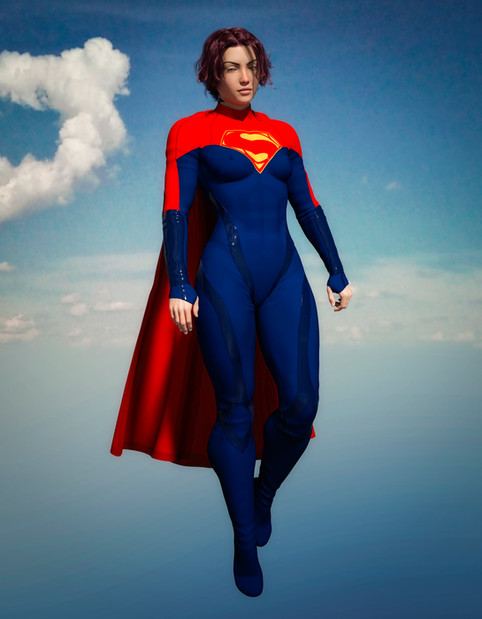 Testing a new Supergirl outfit for a character in an upcoming TTRGP game. The suit has a number of material zones even a noob like me can easily re-color from inside DAZ. The cape does come with the outfit, I choose not to use it for the character. I left the "S" on her chest because it aligned with the character's super name of Sentinel.The character is mine (Vanessa) blended together from a number of different figures.