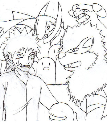 Alright, after like... a few weeks of drawing Kankuro (He being my new drawing obsession, or should I say ex-new drawing obsession?) Suddenly I was playing the new Fire Emblem, you know, the gamecube one where once again you can't name your tactician? Yeah, anyways, In one of the begining chapters I saw this raven laguz guy. (that's lah-GOOZE) Oh... he looked like a humaniod non-snakey Orochimaru. That's a stretch... but anyway his name was Seeker. And thus... Seeker, the blue raven.As a chibi. Geez, I've only been aware of him for... less than a week and I've draw four pictures of him. Sorry Kankuro.