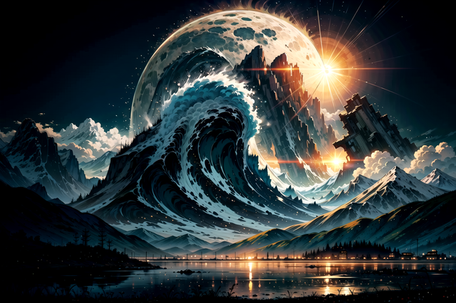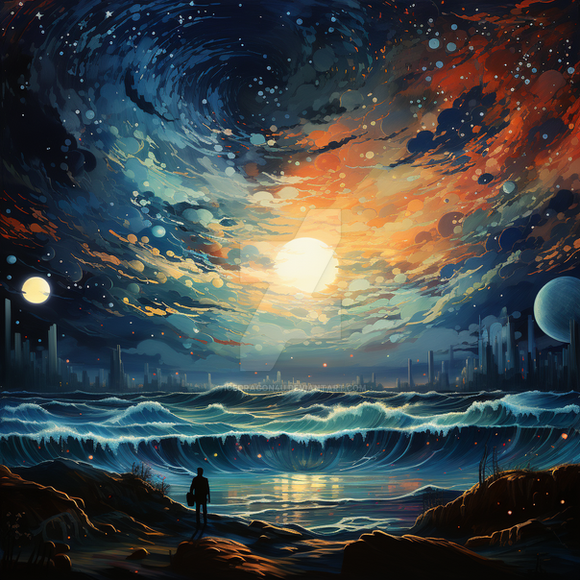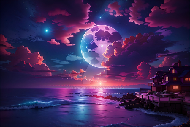 #anime #cataclysm #cyberlight #decor #decoration #disaster #earth #ecology #interiordecor #lanterns #lastdays #moonrise #mountains #nft #night #painting #pier #print #sea #secret #sky #sunset #interiorpainting #art #clouds #evening #future #interiordesign #moon #stars