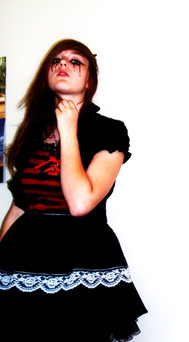 this photo is GREAT! the clothes, the wings, the look altogether... but i don't like the blood spots and the scar on her wrist!