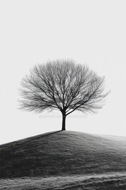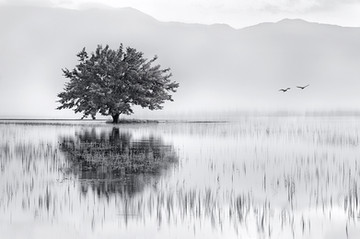 Excellent composition! The use of high key helps emphasize the beauty of the elegant, flowing lines of the tree. I also like that as you stare at the frame, you see more and more - the birds at the top of the tree, the hills in the distance. Great work!