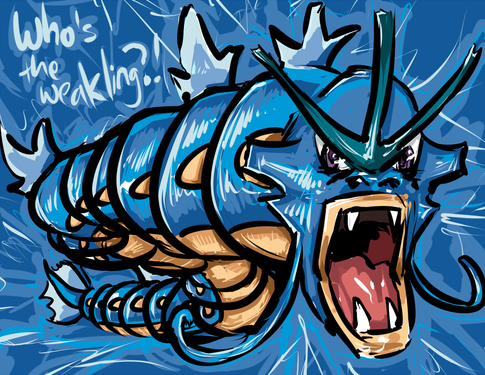 It could've been applied to other Pokemon but I thought it would be hilarious to extend the Rage Guy mouth to fit Gyarados's design and I'm happy with the results lol.