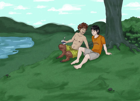 I have been reading the Percy Jackson and the Olympians series lately and I just ADORE these books, especially Grover. I THINK HE'S THE CUTEST THING. I really love the relationship he and Percy have.Drawn in pencil and inked in pen. I'll be coloring this hopefully soon.