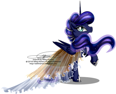 "gasp You look stunning Luna! No, no, don't look embarrassed like that: it only makes you look cuter. Straighten yourself! Raise your chin! Show us the pride you deserve, young mare. I do not tolerate shame!"