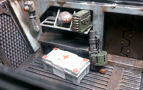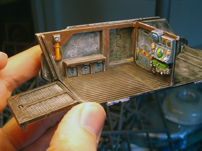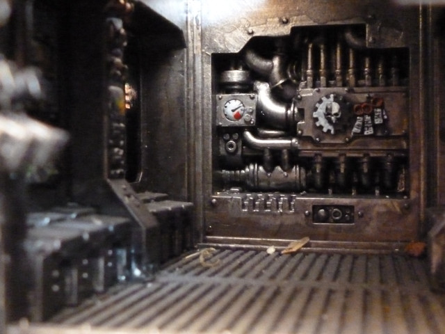 Someone else suggested that I go gold, as it's a good contrast, and also put gold in the recessed area at the back of the tank... the area w/ the 3 horizontal vents.