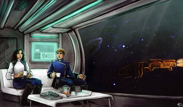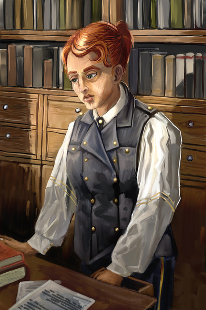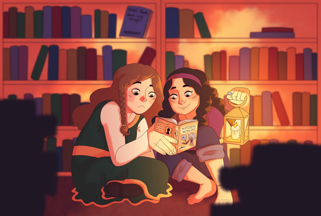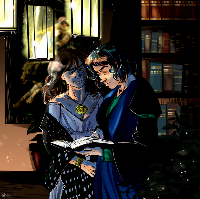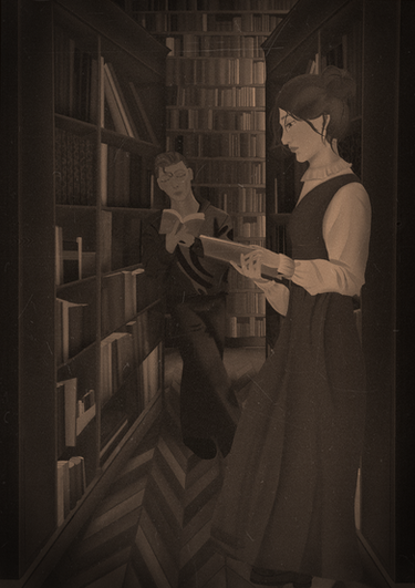 Original characters Ada and Sam at the library.Commissioned cover art illustration for the fanfic Time After Time.