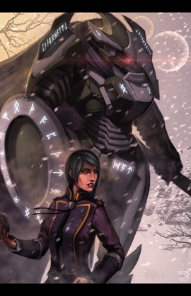 Khepri-Taylor and Contessa.A scene illustration from web serial "Worm" by Wildbow.